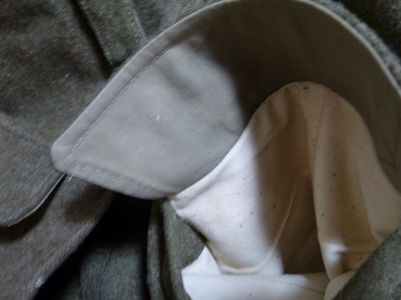 昭和17年制定”試製”防暑衣 日本軍装備:被服 2015年02月04日 「試製」なんてスタンプが押してあったのを発見して若干興奮気味に記事を書いています ボロボロの状態なのでコレクション的な価値は無いと思います。 ポケットの中に入っていたマルシンの紙を見るにゲームで使われていたものっぽいです 掠れていますが甲表記の上に「試製」の文字があります。 読み間違えていたらすみません これが通常の防暑衣の検印です。 写真上側(下に積まれている方)にあるのが17年製の試製防暑衣 写真下側(上に積まれていて襟にモザイクが入ってる方)が19年製防暑衣です。 生地の色と襟の接続位置が微妙に異なります。 ボタンホールの角度はどちらも同じく水平ではなく微妙に角度が付けられています それ以外はさしたる違いもなく、有るといえば試製防暑衣の方がボタンホールに閂がされていないというぐらいです。 追記: 剣留めも三式のように短いタイプです。