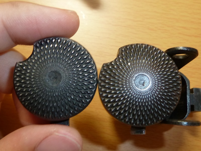 三八式歩兵銃/九九式短小銃 のエアガン・モデルガンで悩んでいる方に 雑記 2014年06月23日 単発のライフル銃を買おうとする中で、タナカ製とKTW製を比較して購入する必要がどうしても必要になると思います。(両方買ってしまう方は別ですが・・・) 私の場合は、高校生時代にKTW製の九九式短小銃を購入したのですが、 なけなしバイト代を使うにあたって相当悩んだ記憶があります。 ともかく、私が両方をじっくりと半年近く比較検討した上の成果(?)をここに記したいと思います。 まずざっとメリットデメリットを二社比較します。 タナカワークス(ガスガン) メリット ボルトやレシーバーの形状が限りなくリアル 定価が3万円安い 亜鉛合金製の本体は平滑に仕上げられていて美しい (↑結構デカイ部分です) デメリット 実射性能に劣る 微妙に形状が違う部分あり(後述) KTW エアガン メリット 実射性能に優れる 実物を型取りしているため、実物との交換が用意 & 細かい部分にも刻印有 デメリット 殆どが樹脂製部品 →最近のロットでは一部メタル製になっていますがそれでも"ホワイト"メタルですから力を加えるとグニャっと曲がります。 しかも塗装仕上げである上に表面はザラザラしています。 また、樹脂製の部分に関しては強度についても勿論のこと、表面がザラザラしている上にウレタン樹脂なのでしょうか、すぐに塗装が剥げます。 微妙に形状が違う部分あり(後述) まあざっとこんなものですが、これだけだと知恵袋の質問などに書いてあるとおりですし 対して参考にはなりませんね。 ここからはネチっこく比較するのに定評がある私の出番です。 意地悪いくらいの批判になるので、気にされる方はこのページを消すことをおすすめします。 KTWのHPから拝借しました。 写真は狙撃銃に見えますが、短小銃だと思ってください。 狙撃眼鏡は比較の対象外です。 *写真は基本左側が複製品です。 上の丸番は問題点を表しています。 他にも細い仕上げ・構造の相違や、ネジの規格違いなど大量にありますが その部分を気にしてどちらか一方を選ぶという人は居ないと思うのでパスします。 また、この項目では一般的にわかりやすい表記をしています。 (例 照門→リアサイト、槊杖→クリーニングロッド) タナカ製 ① フロントバントとエンドキャップが一体成型 これもアレ?ってなる部分の一つです。 写真は実物です。見ての通り2つの部品にて構成されています。 ② クリーニングロッド・クリーニングロッドキャッチが再現されていない。 この部分はKTWも同じなのですが、実物のロッドは60CM 近くあるのに対して これら複製品は15cmしかありません。 また、その保持の方法も実物とは 異なります。 ③ 単脚の形状がおかしい タナカのモデルガンを参考にしたであろう漫画やアニメを見るたびに、タナカの罪深さを感じます。 ごく一部タナカ製のような単脚を持った実物もあったようです。 ④ ボルトリリース(遊底止)のバネがネジ止め 実物はアリミゾになっている部分であります。 KTW製 ① フロントサイトが一体成型のホワイトメタル 思いの外目立つ部分です。 実物は照星を動かすことが出来、またピン止めになっています。(KTW製はゴム接着剤で固定) ② クリーニングロッド・クリーニングロッドキャッチが再現されていない タナカ製と同様の理由です。 写真を見てもらうのが一番早いと思います。 とは言え実際には使用しない部分ですし、合ったとしても無意味ですけどね ちなみに実物はこうなっています。 ③ (1) 対空照尺バネがおかしい この部分、対空照尺を留めるバネが 板バネでなくステンレス線な上、固定方法がアリミゾでなくネジです。 (2) リアサイトベースのネジが省略されている。 ネジが付いたまま型を取ったのか、ネジ山の部分だけが微妙に残っています。 自分は実物見るまでキズがあるものだと思っていました。 ④ ストックに関しての問題 実物はこの部分にドレインホールが開いています。 省略されているものも有るには有るのですが、KTW製の元になった名古屋工廠製の初期型の物は穴が空いているもの以外見たことが有りません。 ⑤ セーフティの形状 KTW製はモッサリした感じです。 ここまで批判に終始していましたが、 タナカ製の、BB弾を発射できるにも関わらずの遊底回りの動作を完璧に再現しているところ KTW製の素直な弾道 は素晴らしいものと思います。 自分個人の意見ですが、 日本軍の武器が欲しいという方はタナカ製を 三八式歩兵銃/九九式短小銃がほしいという方はKTW製をおすすめします。 一応理由ですが、タナカ製は見た目が良く、またボルトの動作も実物通りなので完成度は非常に高いです。 それに日本軍の武器という括りで購入されるのなら細い点も気にならないでしょう。 KTW製の場合は、発射機構以外は実物を型取りしたもので、細部においても 実銃の雰囲気を感じることが出来ますし、樹脂製やホワイトメタル製の部品に不満があれば 簡単に実物と換装することが出来ま