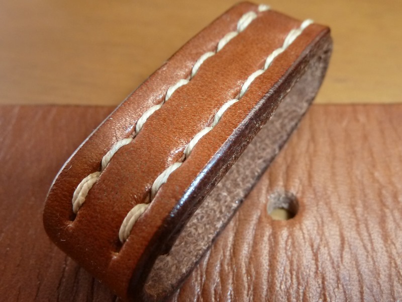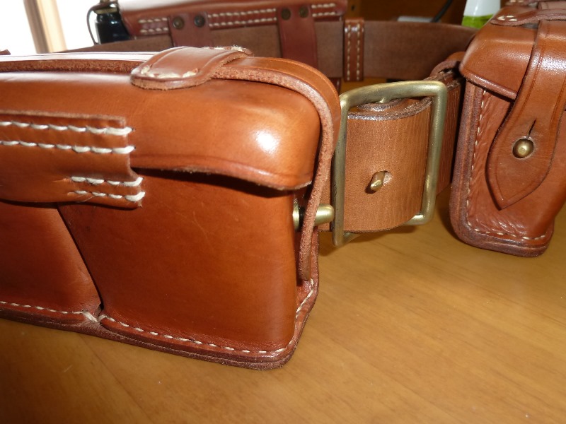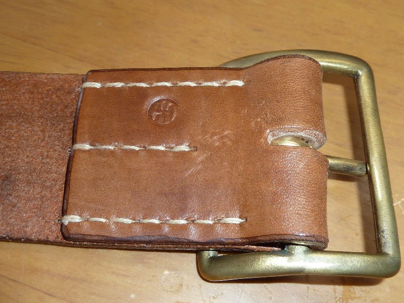 でくの房様製 兵下士官用 帯革 日本軍装備:被服 2014年07月04日 海外製の複製品は摩擦が無くて走りづらかったので、でくの房様に制作をお願いしました。 金具は光っています。 縫い付け方法は海外製のものと異なるようです。 カドのヘリは落とされています。 縫い付けは海外製と比較してかなり丁寧です。 さすがです このように海外製弾薬盒を取り付けても全体のイメージが崩れることは有りません。 また床面も丁寧に処理されていて輝いています。 着用してみた感想ですが、革に高級感があるので特に冬衣に似合います。 ピッタリです