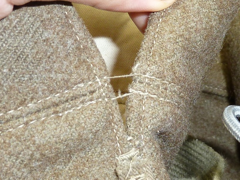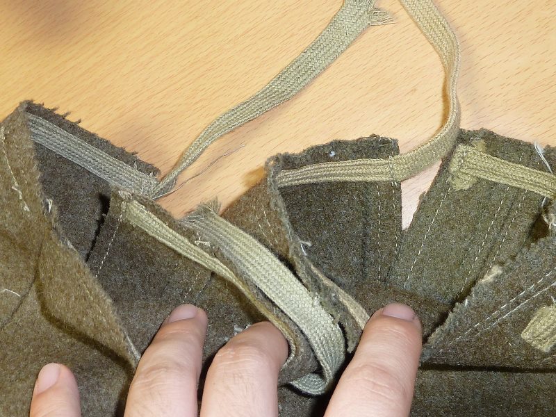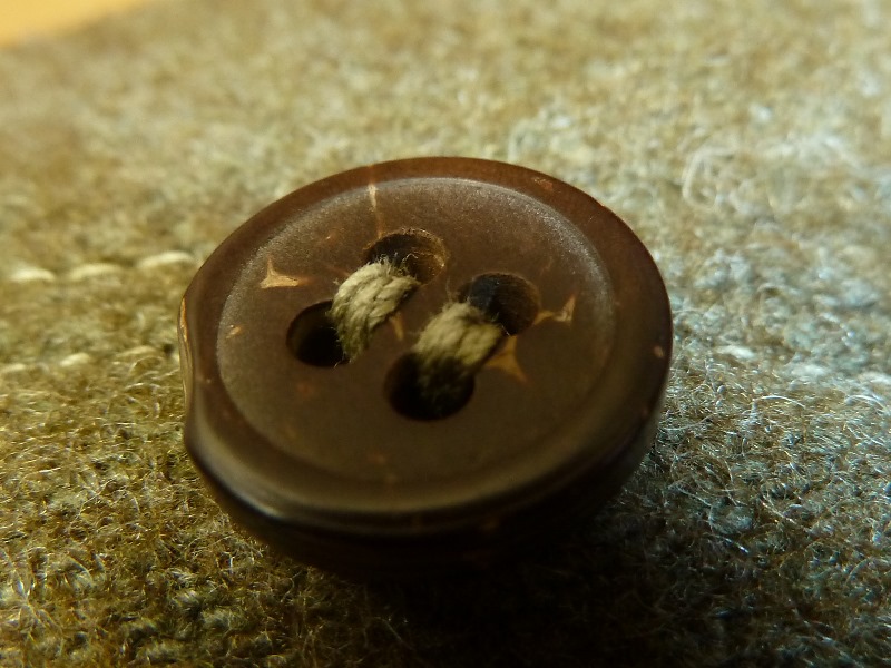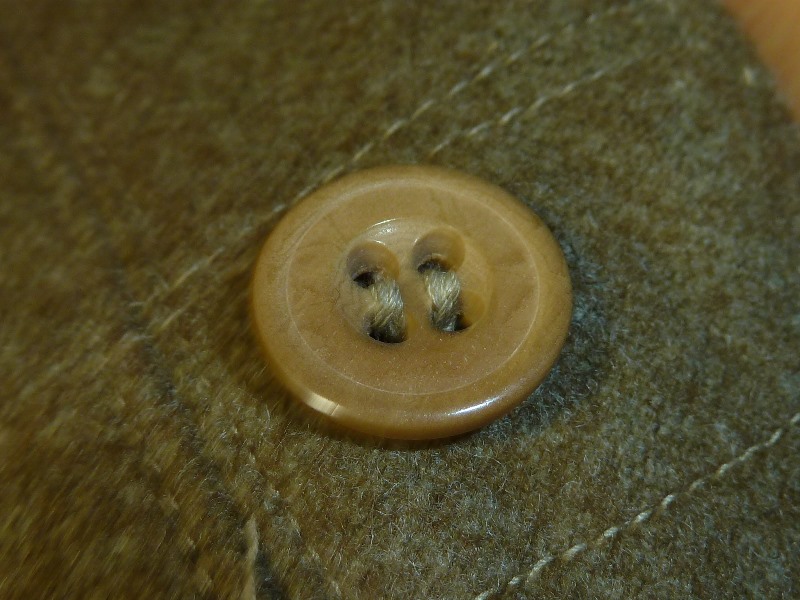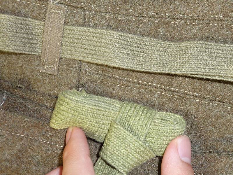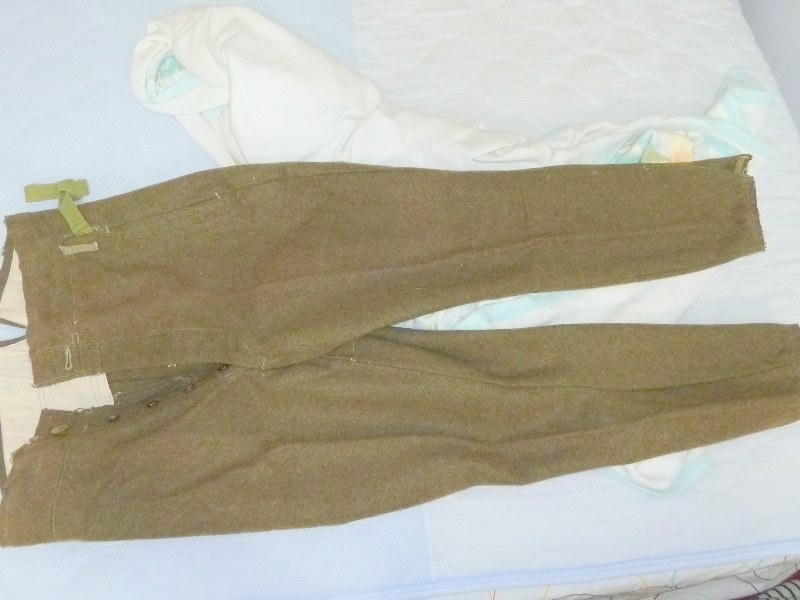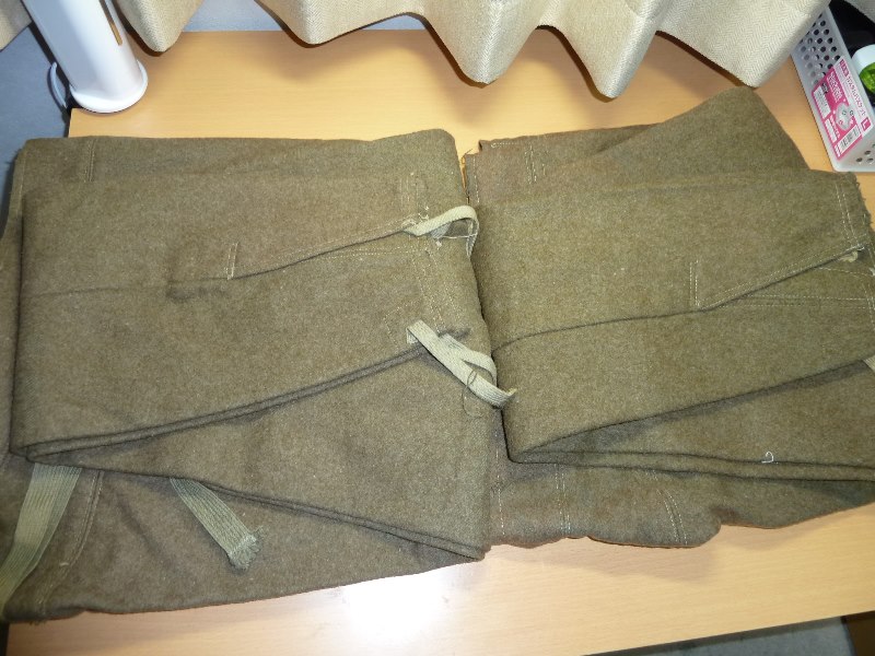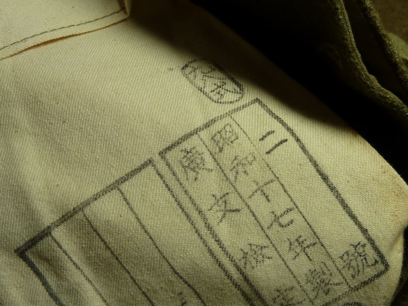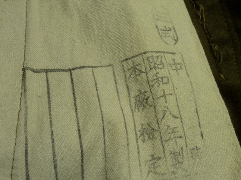 実物 冬用 九八式軍袴、三式軍袴 日本軍装備:被服 2014年08月17日 20分ぐらいかけて文章打っていたのがパーになって泣きながらタイピングしています。 今までは複製品ばかりを紹介していた当ブログですが、今回ついに実物を紹介する日がやって来ました。 左九八式 右は三式です。 どちらも倉庫から出てきたままの状態のようです。 折りたたみ方がそのようになっています。 向きは変わって 左が三式、右が九八式になります。 釦は異なるようです。 九八式軍袴の釦です。 大釦は樹脂製のようですが、制式なものかは不明 小釦は竹製で、制式なものになります。 こちらは三式です。 同じように樹脂製と木製の組み合わせですが、実物なのでしょうか 私にはわかりません 腰紐の比較です。 上は九八式、下は三式です。 この部分は確実に品質が低下しているようで。三式のものはスカスカの生地になっています。 とはいえ特に問題はありません 裾紐の保存状態に差がありますが、同じもののようです。 九八式は完全未使用だったようです。 腰部の裂目の糸が切れていないばかりか、品質管理用のタグ?の末端ようなものも付いていました。 (残念ながら紛失) ついでに脚絆も紹介しておきます。 これの絨も袴と全く同じものでした。 拡大図