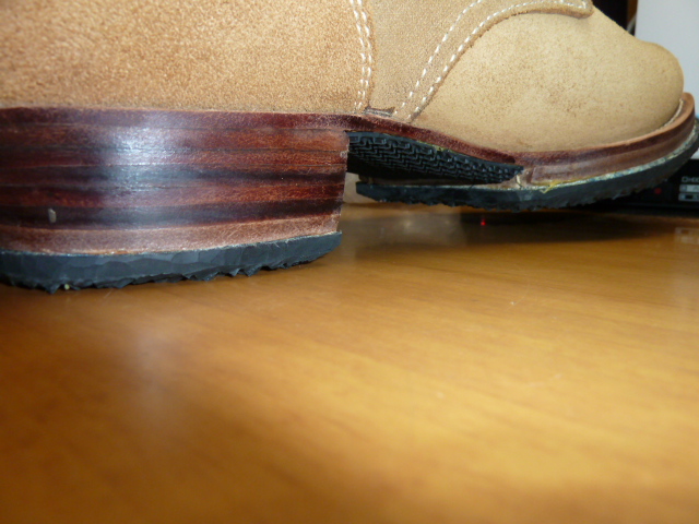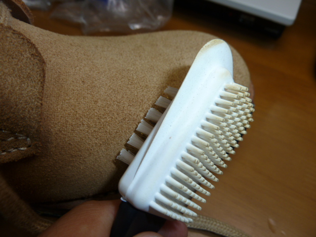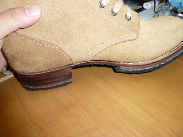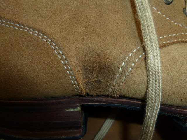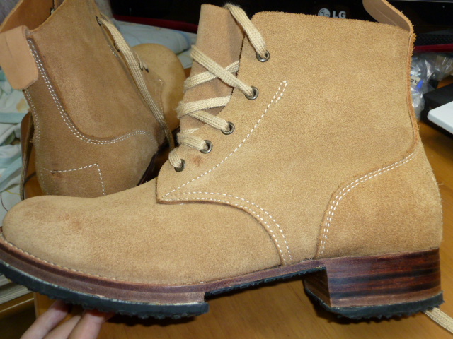 中田商店 日本軍 編上靴 日本軍装備:被服 2013年08月31日 前回は地下足袋を紹介しましたが 今回編上靴(へんじょうか)を購入したのでレポートします。 見ての通り起毛の編上靴です。 スエードでしょうか。 普通の編上靴は在庫がなかったのでこれにしました。 最初に、ブラッシングしてホコリを落としてください。 これをする前に防水スプレーを吹いた日にはホコリが取れなくなります スエード用ブラシがなかなかに素敵です。 綺麗に毛並みを揃えられます。 あと、スエード用ゴムは地雷です。 買わなくていいです。 では早速スエード用のスプレーを吹きましょう (ウォーリー)WOLY スエードカラーフレッシュスプレー (栄養・防水スプレー) 購入時のままだと砂やホコリがくっついて取れなくなりますので、まずは おろす前にスプレーします。(注 部屋の中で吹くと肺に悪いので外でやってください) 革に栄養も与えることが出来て一石二鳥です。 このスプレーは高価なので、たまにスプレーする程度に抑えておいて 普段は安い防水スプレーがいいと思います。 コロンブス AMEDAS アメダス420mL 【HTRC2.1】 コロンブスのスプレーは革製品の防水には定評があります。 実際に大雪の日にこれを履いて外出したことがあるのですが、靴に積もった雪が全く染み込んでいなかったのには驚きました。 (余談ですがアマゾンで買うのが一番安いです。靴屋で定価にて買ったため後悔してます) あと、リアルにするという理由でオイルを塗っておられる方もいますが やめておいた方が善いと思います。 オイルを塗っていた兵士が居たかどうかはちょっとわかりませんが、 現在出回っている現物もおそらくオイルを塗っていない物のはずです。 ビンテージっぽくするのであれば別でしょうが・・・ やはりもったいない気がします それなら最初から表革を買うべきです 実際に使用するにはまだ少し準備が必要です。 見ての通りダブルミッドソールです。 ゴム版を貼ってあります。 革底はコツコツと気持ちのよい音が出るのですがゲームに使用するには滑りまくって明らかに不利なので このようにゴム版を貼ったほうが懸命です。 靴屋に依頼するという手もありますが、安く抑えたいので 楽天ショップのsunstone様でゴム版を購入しました。 ゴム板一枚2000円で合計金額3150円以上なら送料無料です。 8mmなどの厚いゴムだと、編上靴の端の曲がりについて来られなくなり 画像みたいにすこしばかり汚くなります もっと言えば歩くときに靴底が曲がらないので長距離歩行には堪えます。 それでも耐久性のことを考えれば・・・ サバゲやってると激しく靴底を傷めるし スキマにはシューズドクターなるものを塗るとごまかせますので問題はありません。 4mmの薄い板なら恐らく綺麗に追従すると思います。 このように張り付けました。 切断にはオルファ別たちが良いようです。 私は安直にカッターで3時間かけて切り出しました。 普通に買えばよかったです。 →その後微調整のために購入したのですが作業が一瞬で終わって「今までのは何だったのか・・・」みたいな状況に 真ん中の部分はアマゾンや靴屋で売っているような ハサミで切れる薄いゴム版を張り付けました。 通気性が悪くなるとも言われますが正直違いは感じませんので靴底全張り付けです。 最後にこだわってインソールを入れてみました ソルボヒールカップ Mサイズ(24.5~26.5㎝) ブラック 編上靴には中敷きはありませんから、あったほうが疲労は減ります。 さて、ここからは中田商店の編上靴 についてのレビューとなりますが、 まずご覧になって欲しいのが 最初からこの汚れはどうでしょう。 中田商店に実際に行ったことのある方なら解ると思うのですが あそこの管理は若干おおざっぱですから どこかで油でもついてしまったのでしょう 毎度おなじみ中国製 何が一番ヤバイかって、こんなに靴底がいがんでるんですよ! かかとの一点に体重がかかるから痛い!!! いくら中国製と言って、靴としての本質を見失うような事になってますから ここはブチ切れたいのですが気づいたのは靴底を貼ってからで 中田商店には文句の言いようがありません。(←これは私が悪いです) 精密複製とされる代替はありませんのでこれを使用するにはどうすれば・・・ シューズドクターというものにて靴底の厚みを変え、全体が接地するようにしました それにしても酷いなぁという感じです 私が買ったのが単純に不良品だっただけかもしれませんしね・・・(涙 見た目自体は悪くないのですが、いろいろな点で残念です。 現状ではここしか選択肢が無いのでなんとも言えませんが、まあこういった感じです。