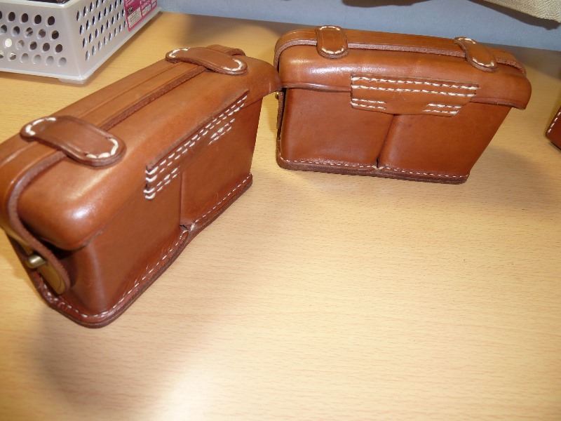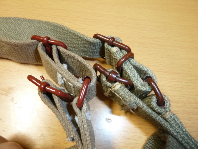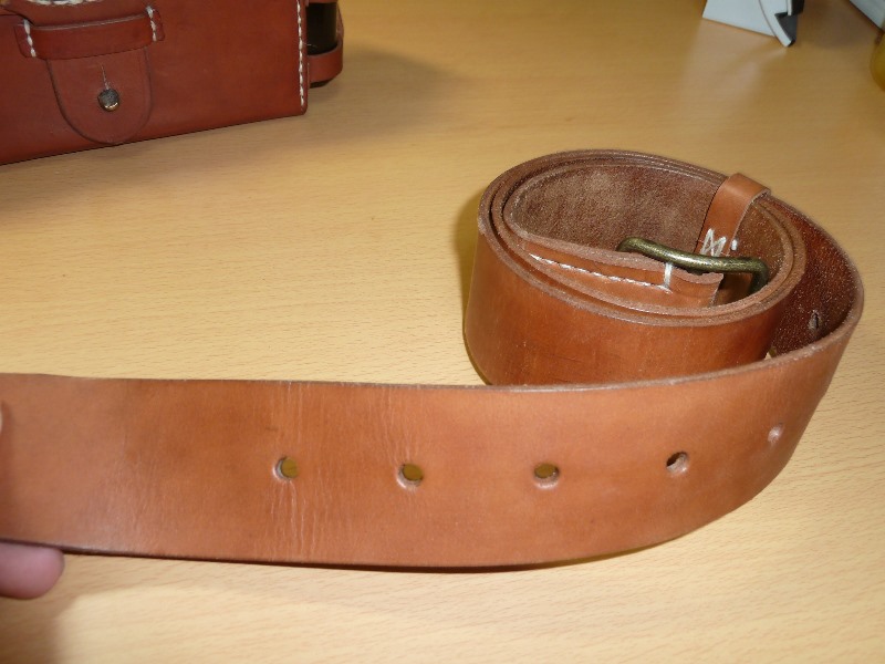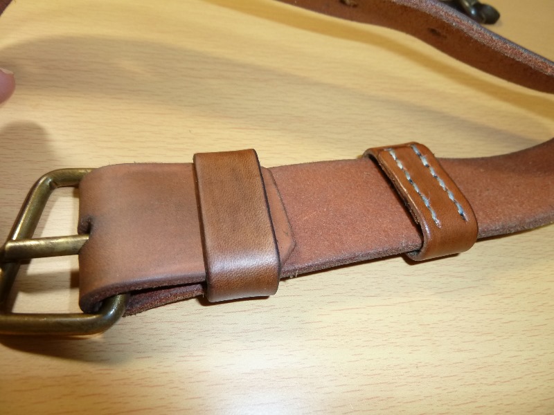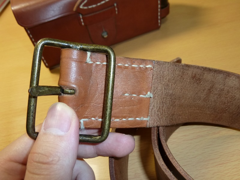 でくの房様 九九式短小銃 負革 改造 日本軍装備:装備 2014年05月20日 でくの房様の負革は素晴らしい物なんですが、三八式用の金具ですので 九九式用の金具を取り付けれるように改造しました。 単純にポンチで穴を開けるだけです。 個人的趣向ですが、もう少し色の濃いほうが好みなので手を加えてみました。 またいつものことながら途中の写真はありません。 写真を撮るのを忘れてしまいます。 最初の画像と比較すれば色味が変わっているのがわかると思います。 手順ですが ヤスリで染料を落とす(#400-#800) →靴墨を真っ黒になるまで塗る → ある程度まで乾燥させ、レザー用クリームで靴墨を落とす →ラナパー等の保革油で保護し、布で色がつかなくなるまで磨く って感じでした 多分 割りと良い色に仕上がったと思いますが、表面にホコリをつけてしまったりと 完成形を崩すような結果であったとも言えます。 以前にも書いたと思いますがでくの房様の革は中国製の複製品と比べて本当に良いものです。 背負っていてズレることもなく、過度に擦れることもありません。 中国製の帯革はやはりツルツルしていて 走ると弾薬盒が上下に揺れてしまう欠点があります。 帯革も作っていただけるものならぜひともお願いしたいところです。 ラインナップしてくださいお願いします ちなみに床尾負革止は三八式用の実物です 一応入るんだぞー ってことで 追記 このように目立つ場所に打たれているマークは贋作防止用のものらしいです。