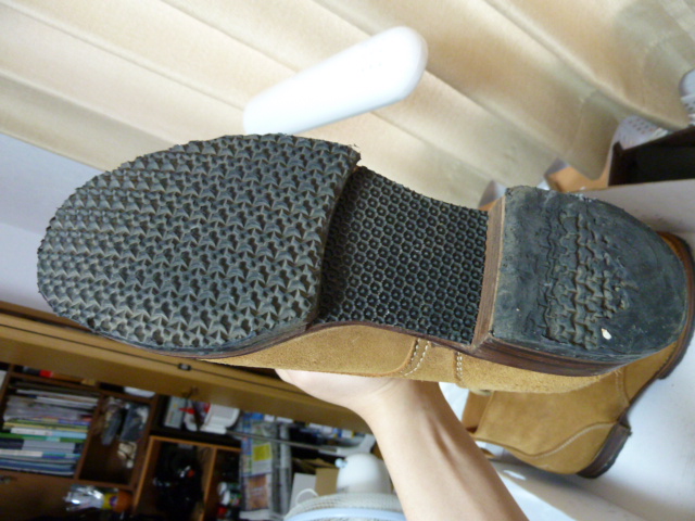 中田商店 編上靴 続稿 日本軍装備:装備 2014年05月12日 ちょうど中田商店の編上靴が再入荷しました 2014/5/12現在 サイズ全ての在庫があります 以前紹介した編上靴ですが、一年近く使用したので改めて紹介します。 靴としてはスエードの革靴というものですので サイズ選びもスニーカーと異なり、足の実寸が靴のサイズとなります。 ワイズはEぐらいでしょうか、当然ながら日本人向けの形状です。 (ちなみに私は実寸25.3ぐらいですが、衝撃吸収インソールを入れるために 靴のサイズは27にしました。) 表革の編上靴(実物 中田製は不詳)がクロムなめしなのに対して こちら裏革の編上靴は実物同様にタンニン鞣しです。 余談ですが裏革の方が表革に比べて流通していたようです。 書きたいことが多すぎてまとまっていませんが、 基本的にこの中田製の編上靴は良いものだと思います(品質管理は・・・ まあ御徒町店の様相を見てれば・・・) 表革と裏革の二種類がありますが、長く使いたいのなら表革がお勧めです。 裏革(スエード) は見た目もよく、 防水スプレーさえ吹いていれば水にも強いですが、 おもいっきり泥をかぶったり、油がついてしまえば黒ずんで汚くなります。 汚れ落としにシャンプーなんかもありますが、限界があります。 サバゲなんかでは汚れて当然ですから表革の方が良いと思います。 (スエードに油を塗るという究極の非可逆手段もありますが・・・)
